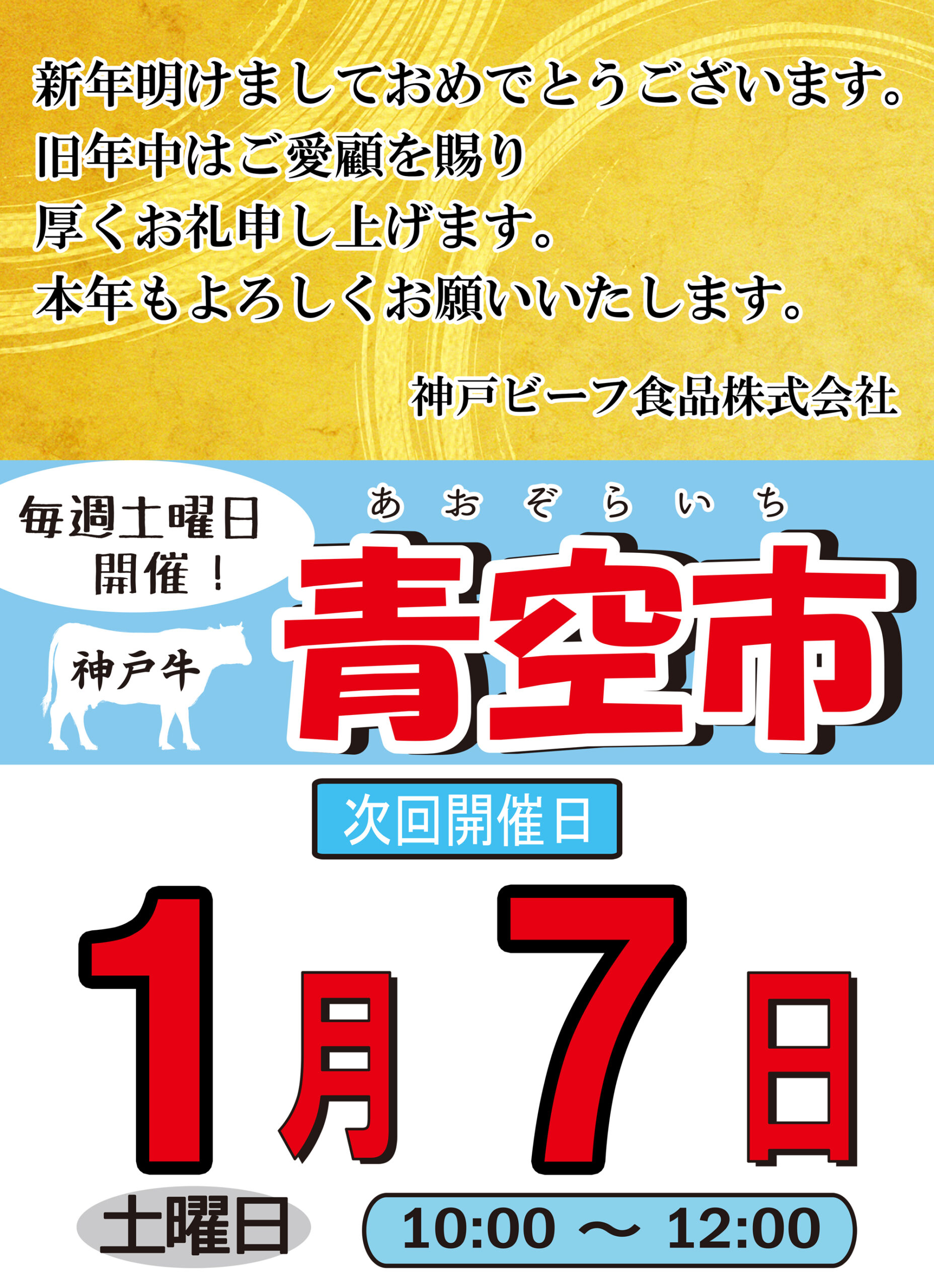 こんにちは! かんべです。 毎週土曜日恒例、ご存知!神戸ビーフ食品株式会社 青空市 明日 1月7日 10:00