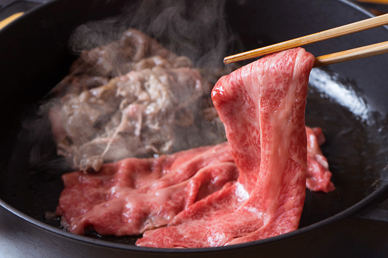 カタロースは、きめ細かなサシと赤身のバランスが良く、やわらかさと濃厚な旨みを同時に楽しめる部位です。すき焼きやしゃぶしゃぶはもちろん、焼きしゃぶにしても肉の甘みが引き立ちます。