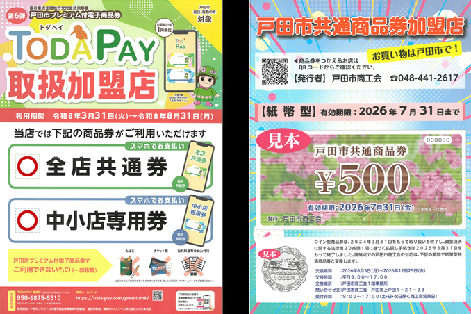 TODAPAYと戸田市共通商品券がご利用いただけます。