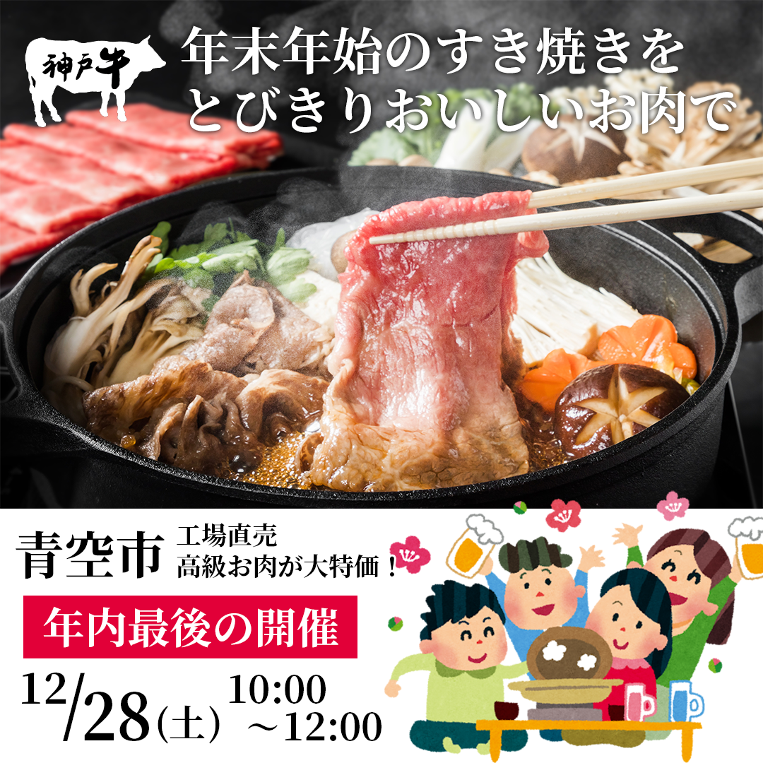12月21日土曜日 10時から神戸ビーフ食品株式会社『青空市』開催します! 神戸牛や黒毛和牛のすき焼き用がおすすめです!! Read More »