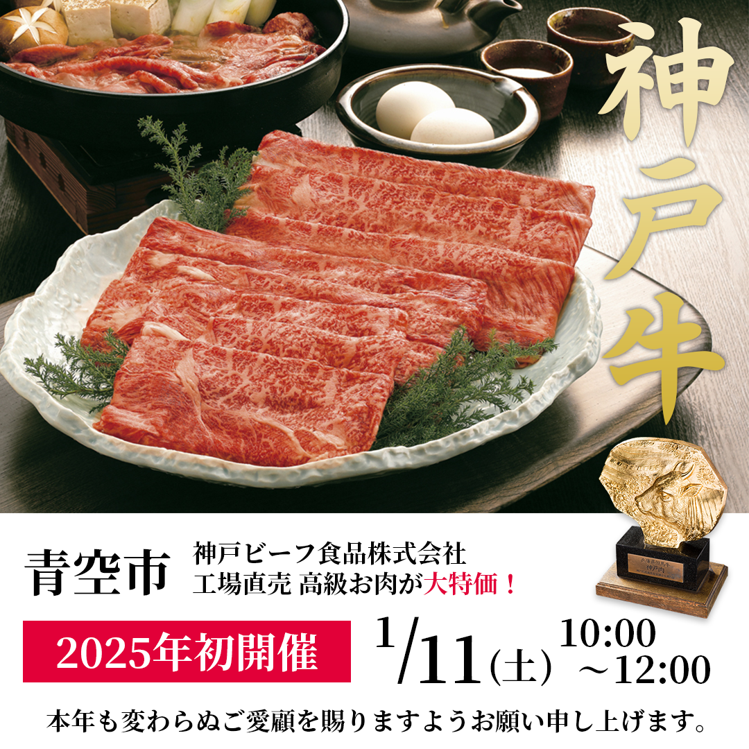 1月11日土曜日 10時から神戸ビーフ食品株式会社『青空市』2025年初開催となります! 神戸牛や黒毛和牛など、新年に相応しい豪華なお肉を取り揃えています!! Read More »