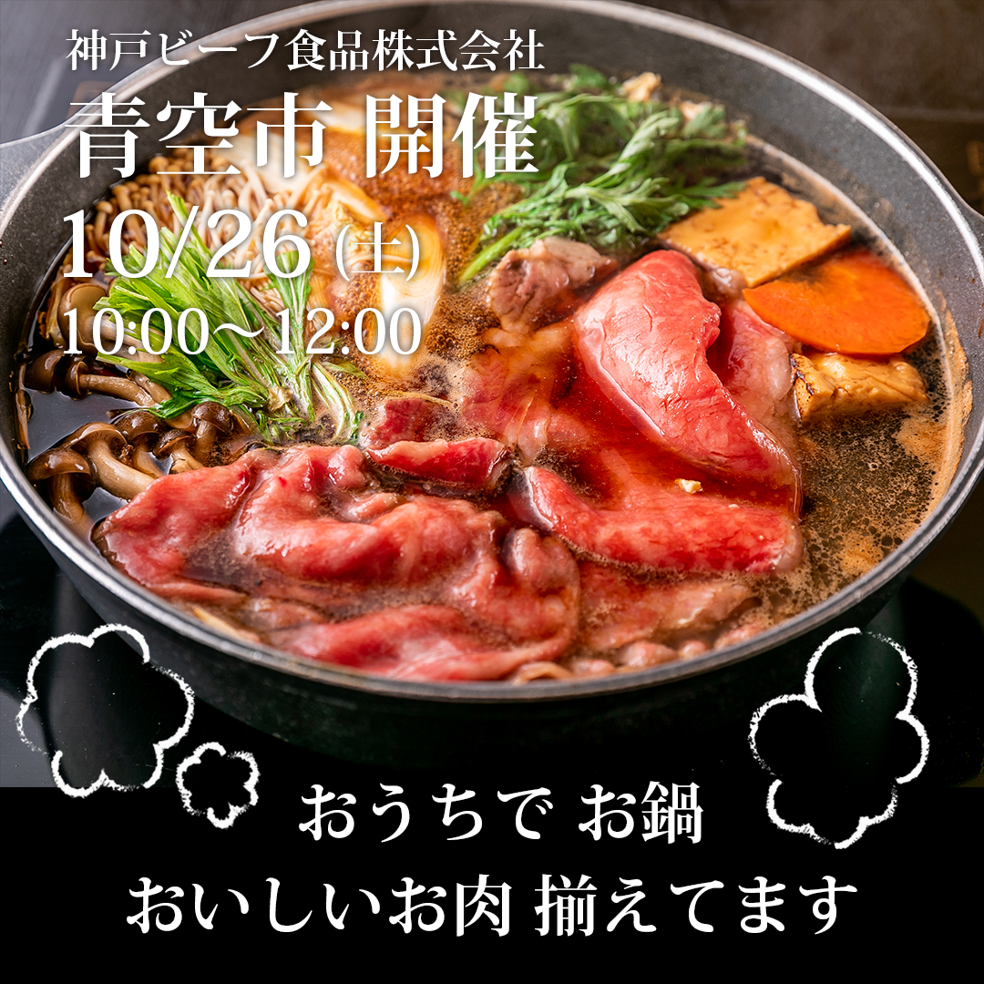 10月26日土曜日 10時から神戸ビーフ食品株式会社『青空市』開催します! 美味しいお肉で、今季初のお鍋はいかがでしょうか? Read More »