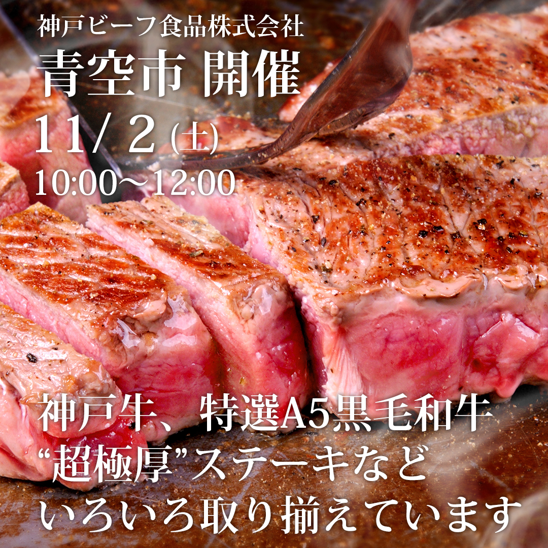 10月19日土曜日 10時から神戸ビーフ食品株式会社『青空市』開催します! 神戸牛リブロースステーキ、特選A5黒毛和牛サーロインステーキがおすすめです! Read More »
