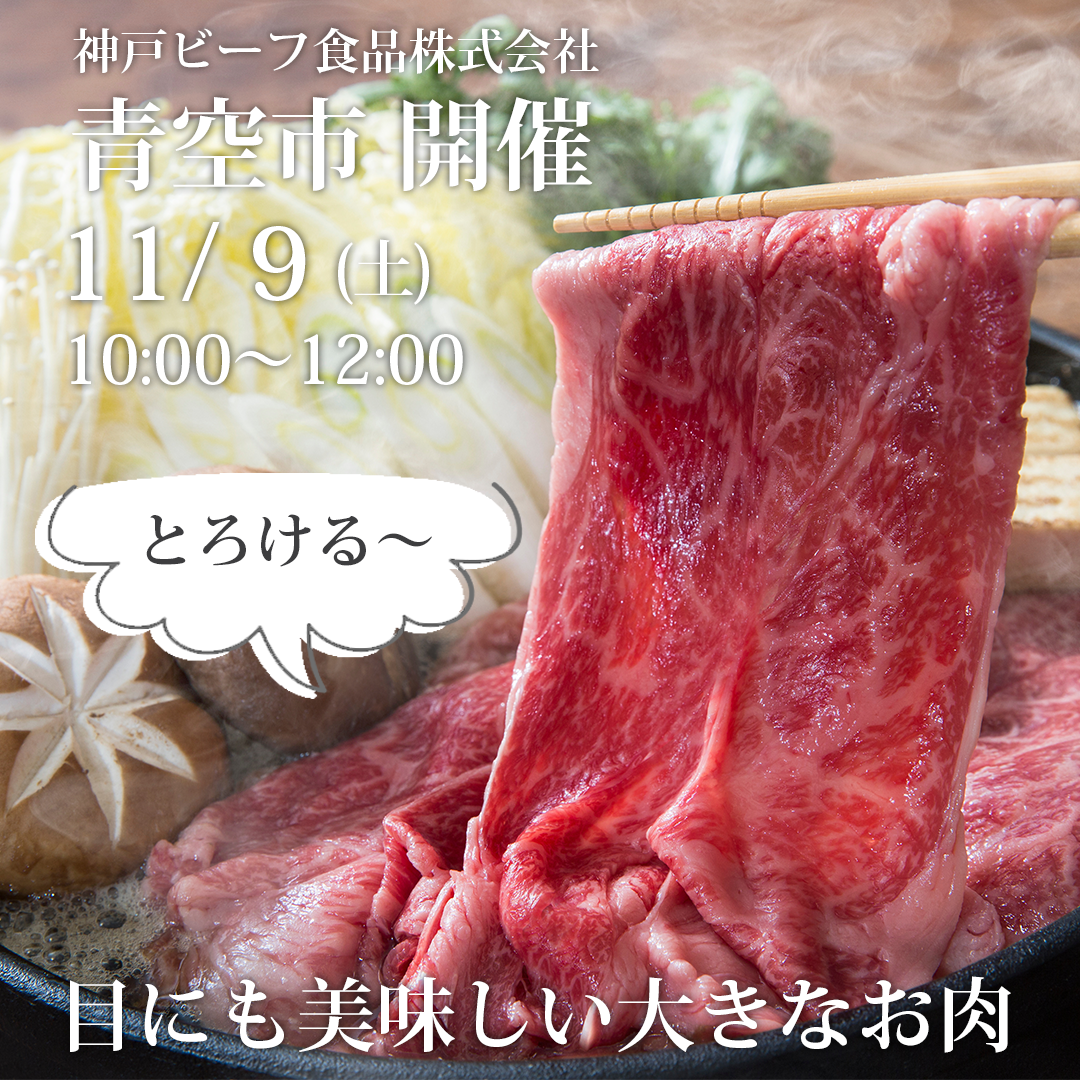 11月9日土曜日 10時から神戸ビーフ食品株式会社『青空市』開催します! 神戸牛、黒毛和牛すきやき、しゃぶしゃぶ用がおすすめです!! Read More »