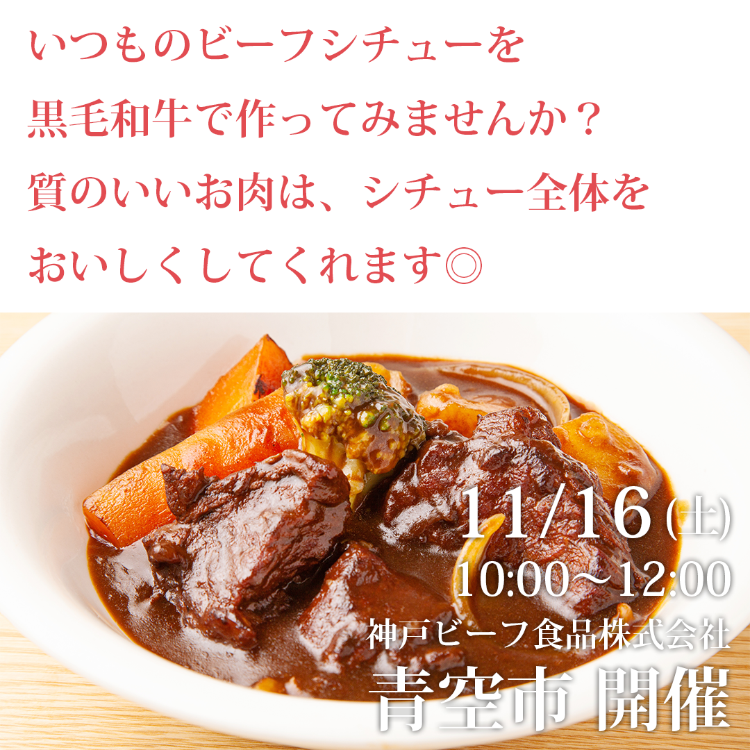 11月16日土曜日 10時から神戸ビーフ食品株式会社『青空市』開催します! 黒毛和牛 シチュー用ブロックがおすすめです!! Read More »