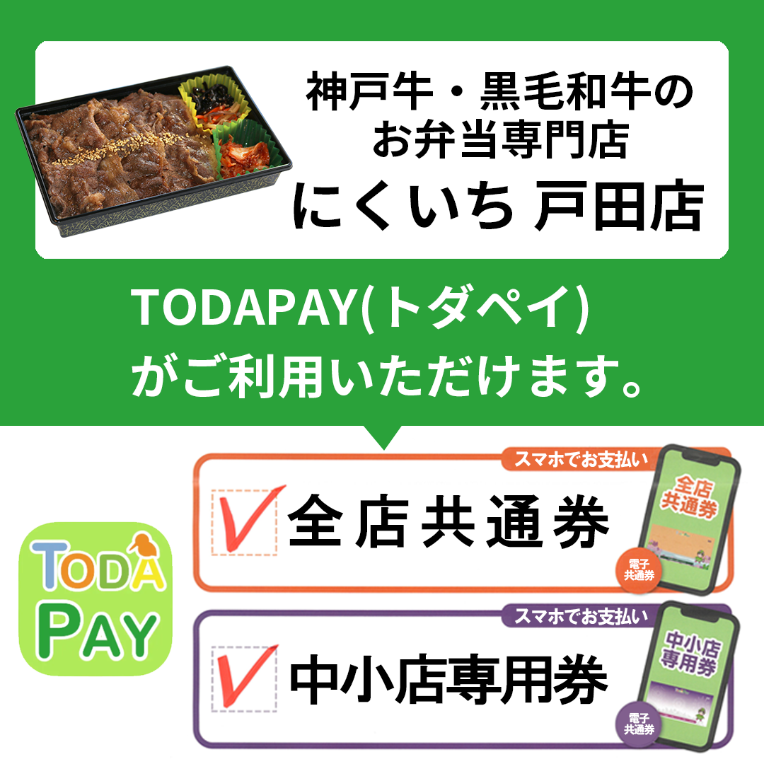 TODA PAY(トダペイ) 第3弾 戸田市プレミアム付電子商品券 神戸牛・黒毛和牛のお弁当専門店「匠苑にくい