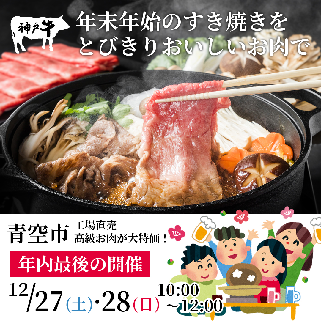 12月20日(土) 10時~12時『青空市』開催します! 卸売工場直売・神戸牛がお買い得です!! 年末年始のご馳走にいかがですか? Read More »
