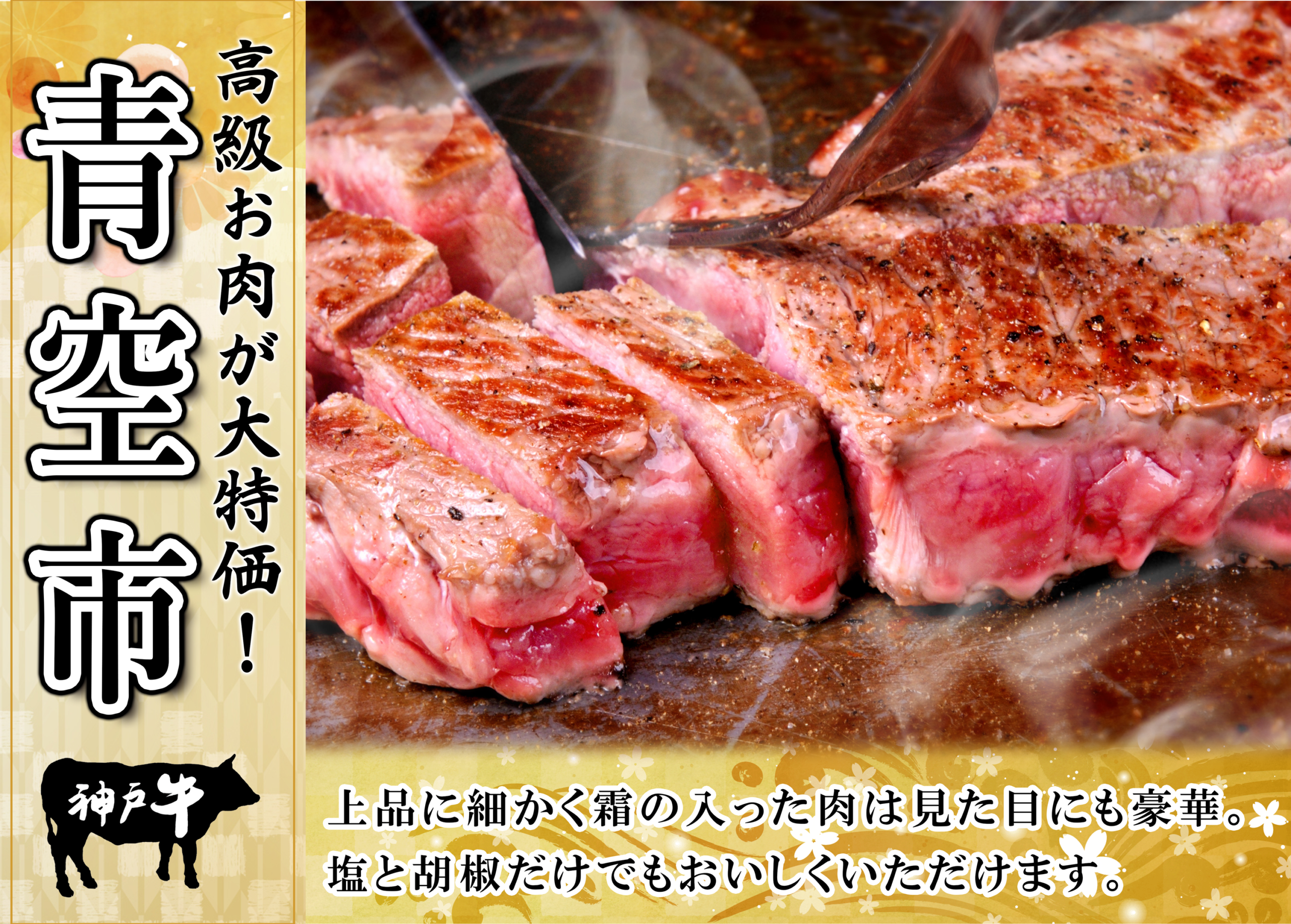明日16日 土曜日10時から神戸ビーフ食品株式会社『青空市』開催します!超目玉商品は『国産牛サーロインステーキ400g』今週も暑さ対策で涼しい屋内で開催します Read More »