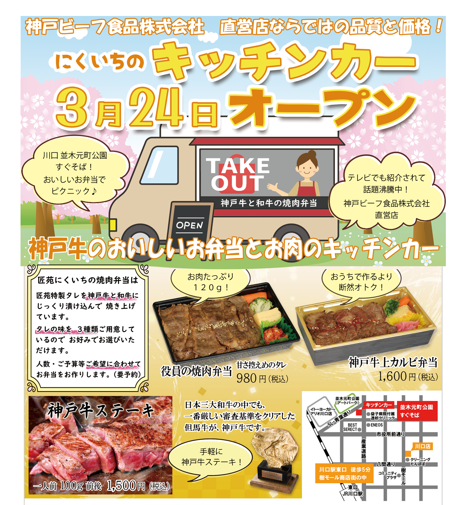 こんにちは! かんべです。 3月24日に神戸ビーフ食品株式会社直営『匠苑にくいちキッチンカー』がオープンしまし